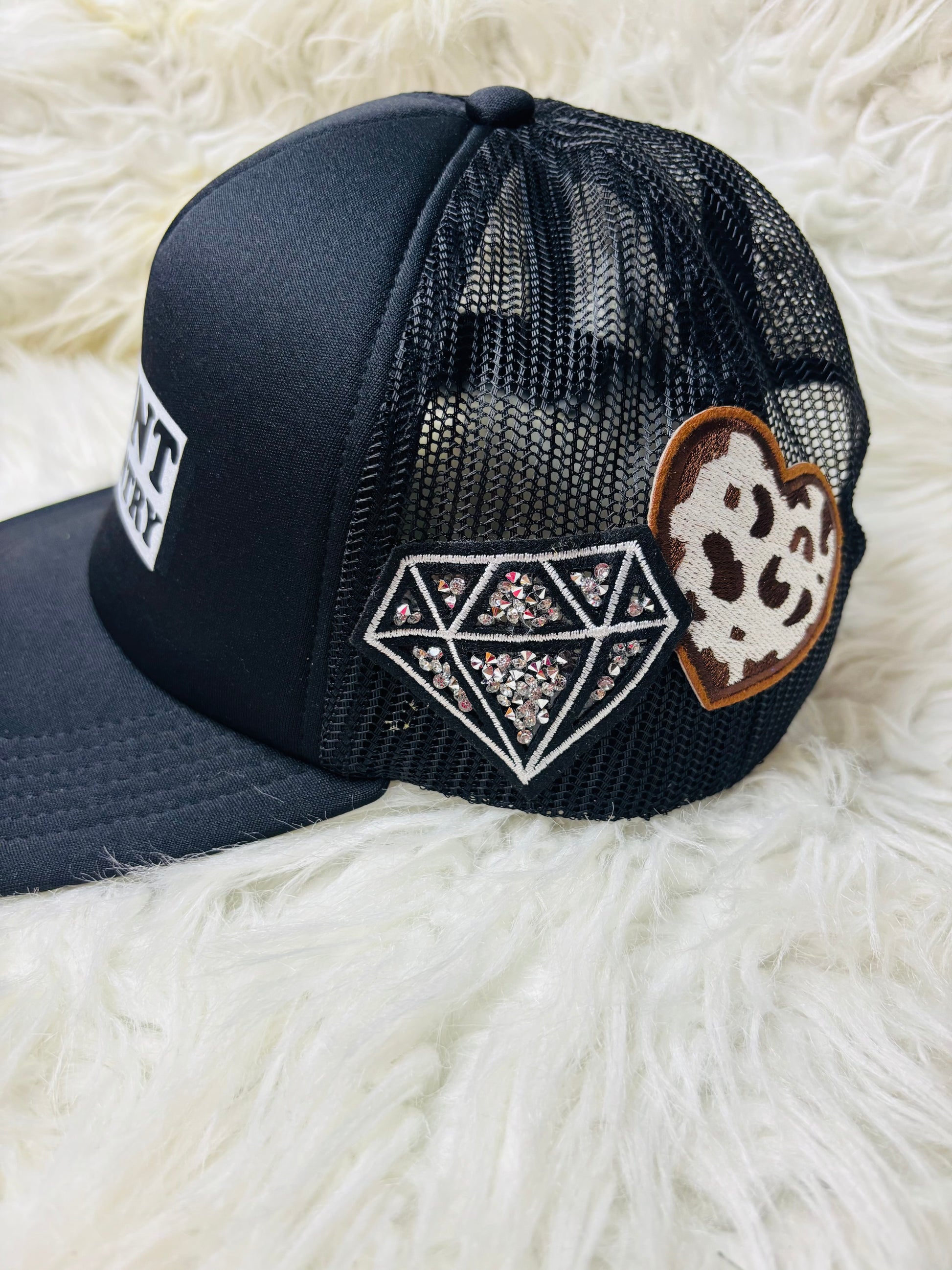 Black trucker hat with patches