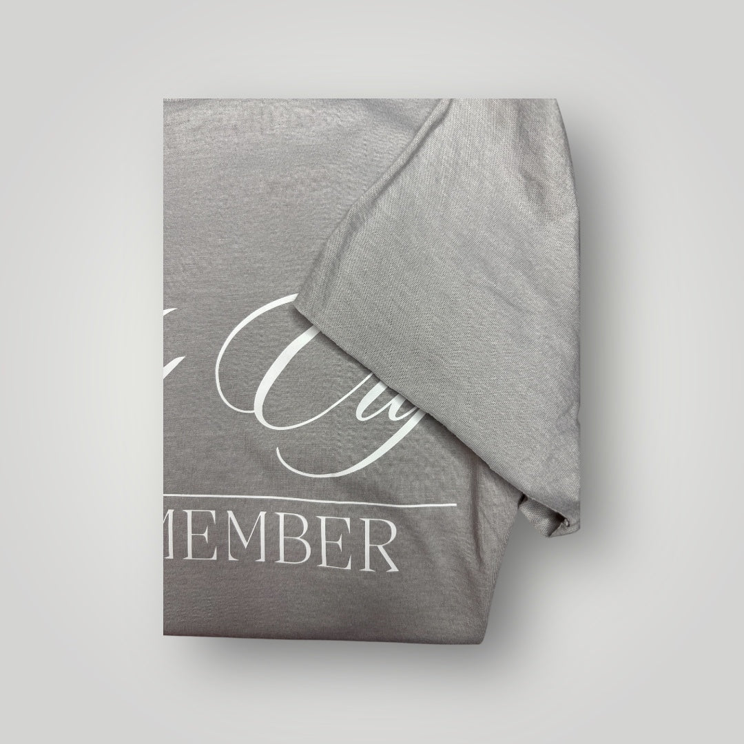 Light Grey short sleeve T-shirt. The bottom and sleeve hems are cut off